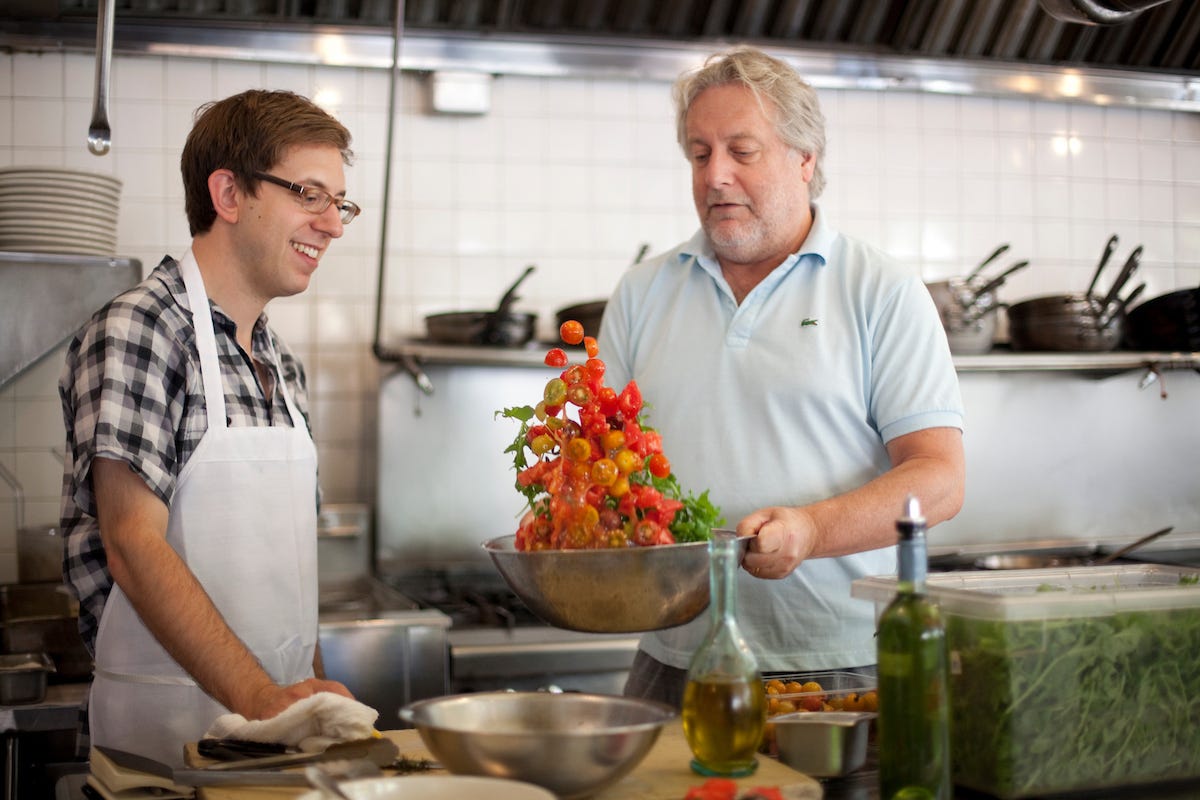 Here’s Chef Waxman at his restaurant Barbuto back in 2010 showing me how to toss a salad in the air with just a flick of the wrist: