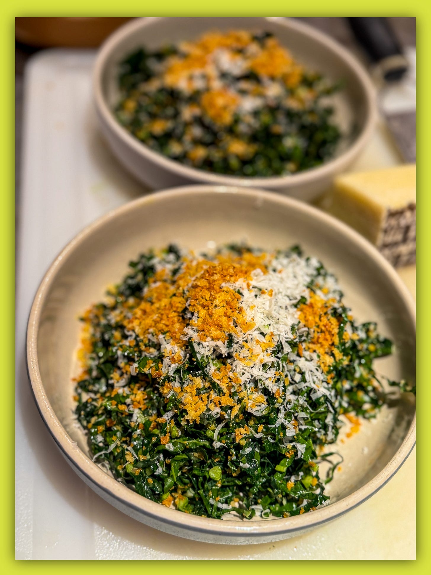 · ½ cup toasted breadcrumbs (the cookbook recipe says 1 tablespoon, but at the restaurant they use way more)