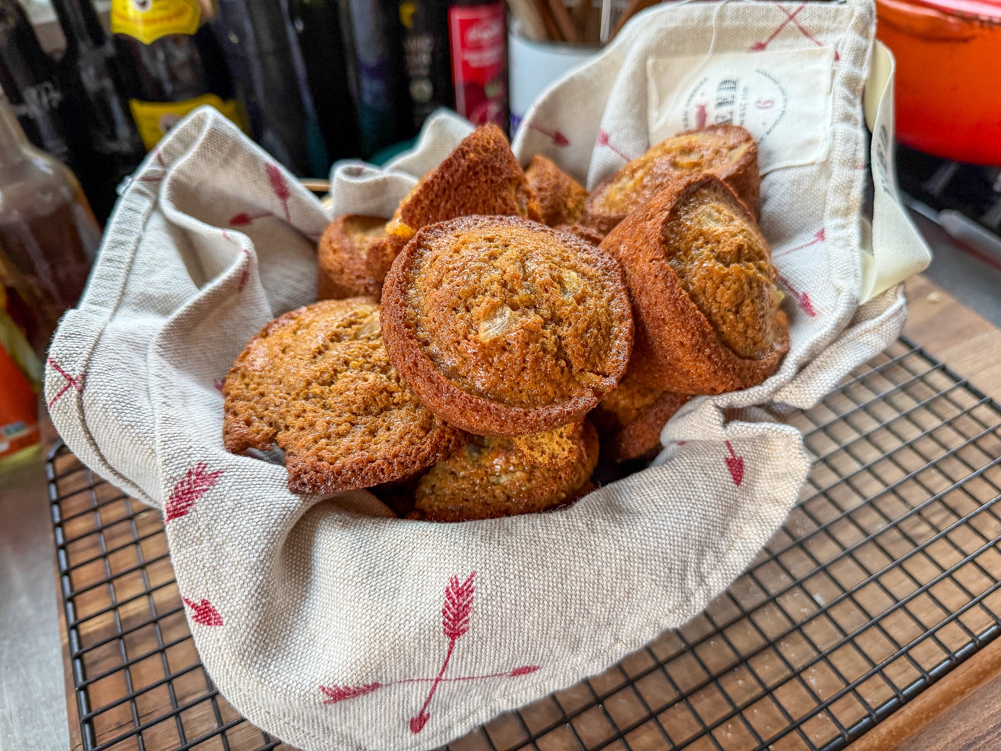 Yesterday we went to a casual brunch at our neighbor’s Rob and Kath’s and I asked myself “What Would Martha Stewart do?” so I made muffins. Not just any muffins: triple-ginger muffins from the NYT. (Here’s a gift link.)
