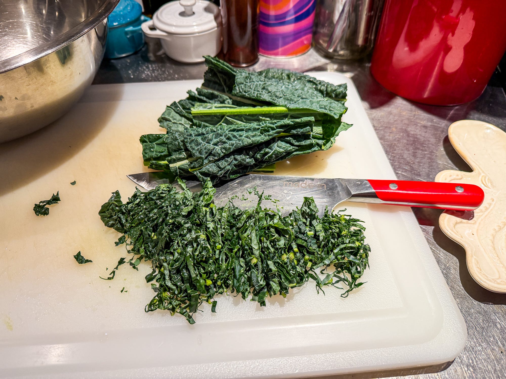 · 8 ounces kale, stems intact (I used Tuscan kale)