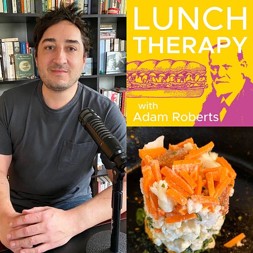 It's not every day that a rock star becomes a therapist and then eats lunch and comes on a podcast to analyze it, but that's precisely what happens in today's episode of Lunch Therapy with former Grizzly Bear front man, Ed Droste. Learn why Ed decided to give up the not-so-glamorous life of a musician, the kind of food he ate on the road, how he dealt with reviews and Tweets, how he got over his stage fright, and the role therapy played in his life. We also talk about Ed's parents' adventurous eating, loving lobster but hating the juicy explosions, how he makes a salad, Postematesing from Sqirl, his obsession with candles, and how his neighbor roasts a chicken.